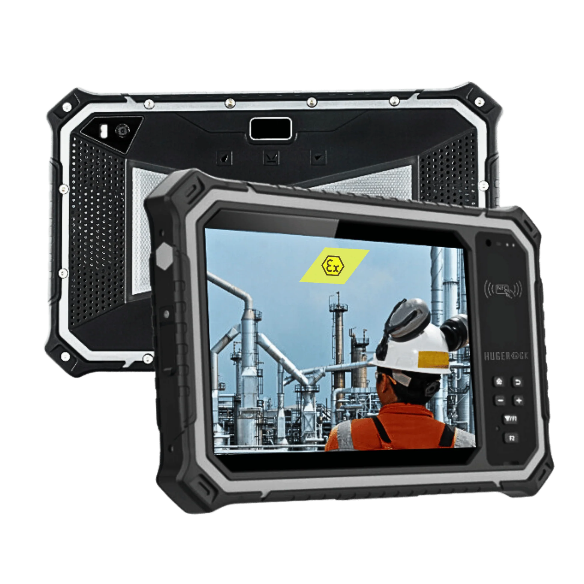 La HUGEROCK H81 es una tableta reforzada a prueba de explosiones, especialmente indicada para personal que trabaja en atmósferas con gases explosivos dentro de industrias como petróleo, petroquímica, minería, defensa y seguridad pública.