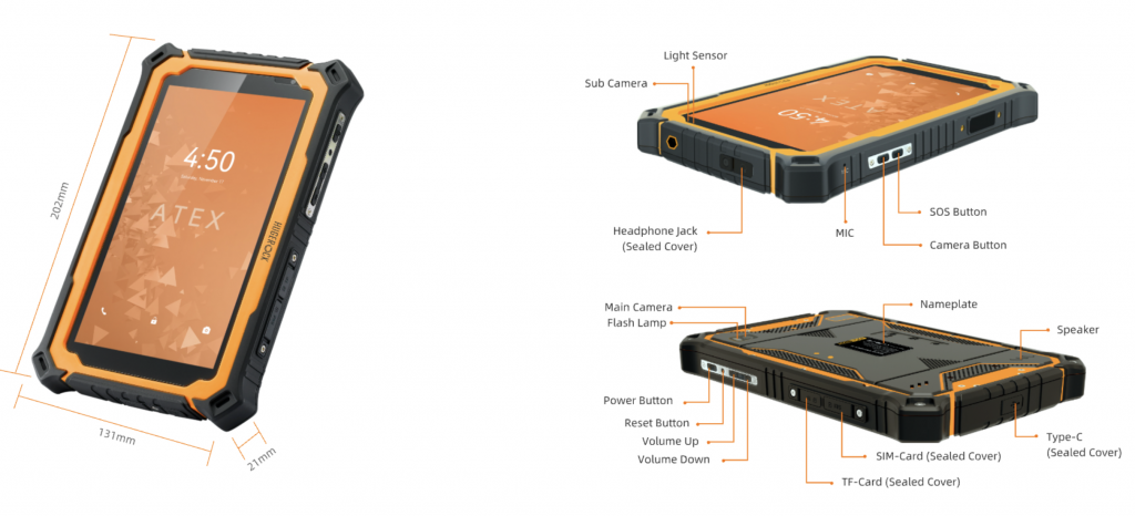 La HUGEROCK T71EX es una tableta robusta con certificación ATEX, ideal para el personal que trabaja en entornos con atmósferas explosivas, como en las industrias petrolera, petroquímica, minera, militar y de seguridad pública.